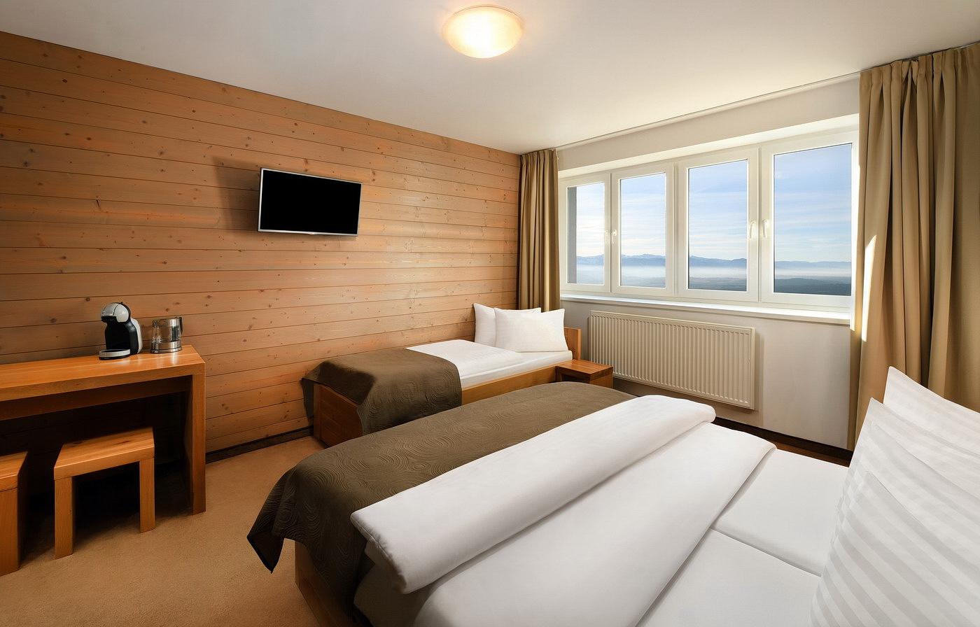 Stay in a comfortable double room with an extra bed and a beautiful view of the Tatra Mountains. Villa Emma is located right on Štrbské Pleso, in a quiet location with excellent access to everything the Tatras have to offer – hiking trails, restaurants, and shops are literally at your fingertips.